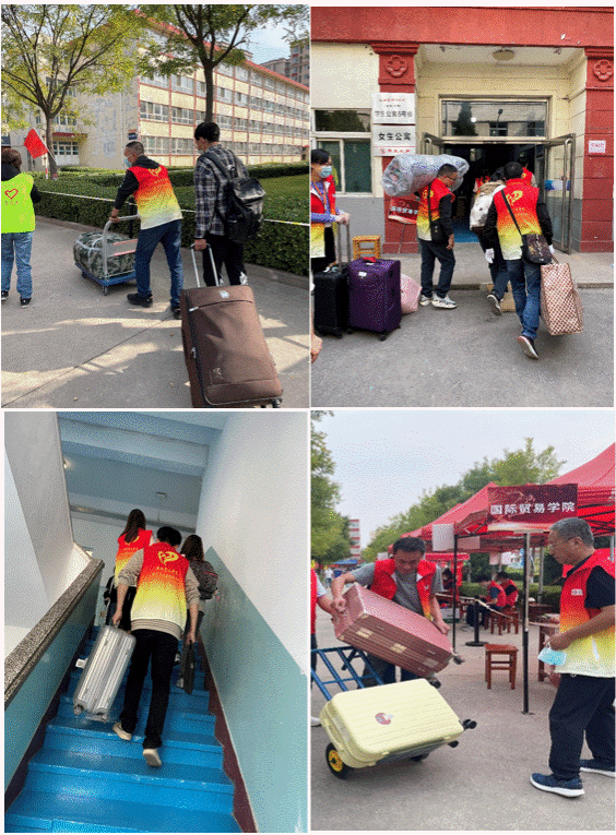 “还来不及感受与父母离别的惆怅,行李就被热心满满的教师志愿者拖走了~