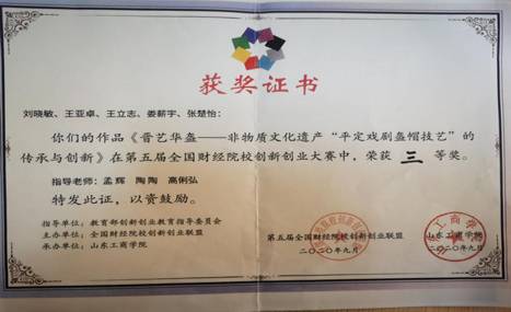 2020年,世界杯赛程 学生刘晓敏团队项目《晋艺华盔——非物质文化遗产“平定戏剧盔帽技艺”的传承与创新》