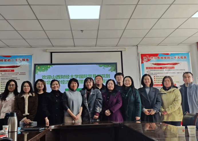为加强兄弟院校间交流与合作,推动专业教育高质量发展。3月12日,世界杯赛程 国际商务教研室主任刘青云副教授、国际经济与贸易教研室主任李丽副教授等一行8人前往中北大学经济管理世界杯赛程 进行交流访问。中北大学经济管理世界杯赛程 经济学系主任周丽娟教授、国际商务专业硕士导师温丽琴副教授等热情接待了来访教师。