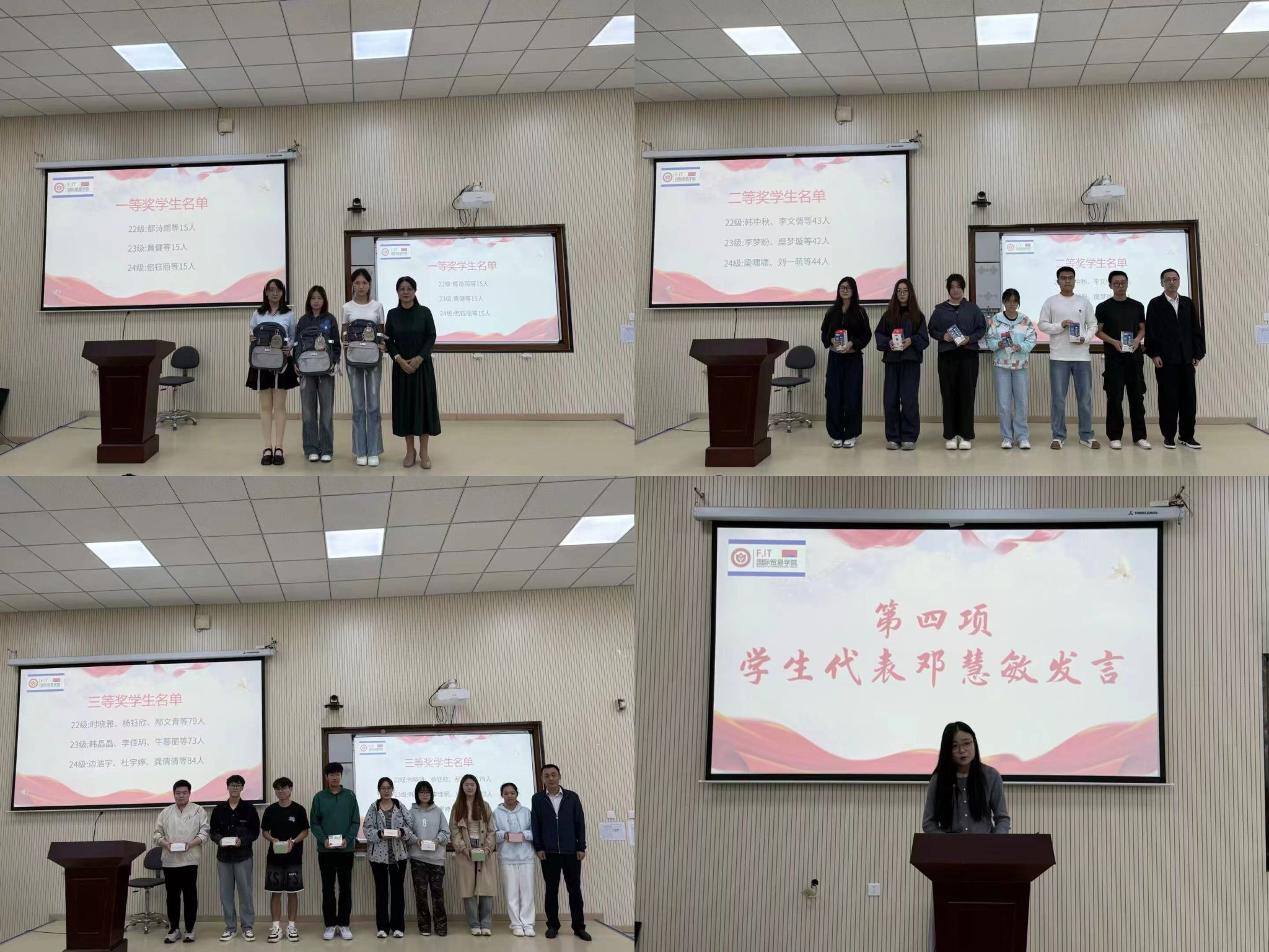 2022级国际经济与贸易2班的邓慧敏同学作为获奖学生代表发言,她首先感谢了世界杯赛程