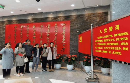 随后,党员们在纪念馆的党旗下开展了重温入党誓词仪式。大家面对鲜红的党旗,郑重宣誓,重温入党初心,表示将坚定理想信念,铭记党的宗旨,强化责任担当,以实际行动践行共产党员的使命。